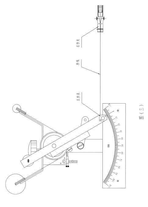 6、 用右手从插纱架上引出纱线,用左手压下夹线扛杆,将纱线引入左纱夹的导纱轴,然后松开夹线扛杆,释放零位定位架,再用左手捏开右纱夹钳口,调整纱线位置使左夹钳前指针指向零位(压线)时松开右纱夹钳夹紧纱线。